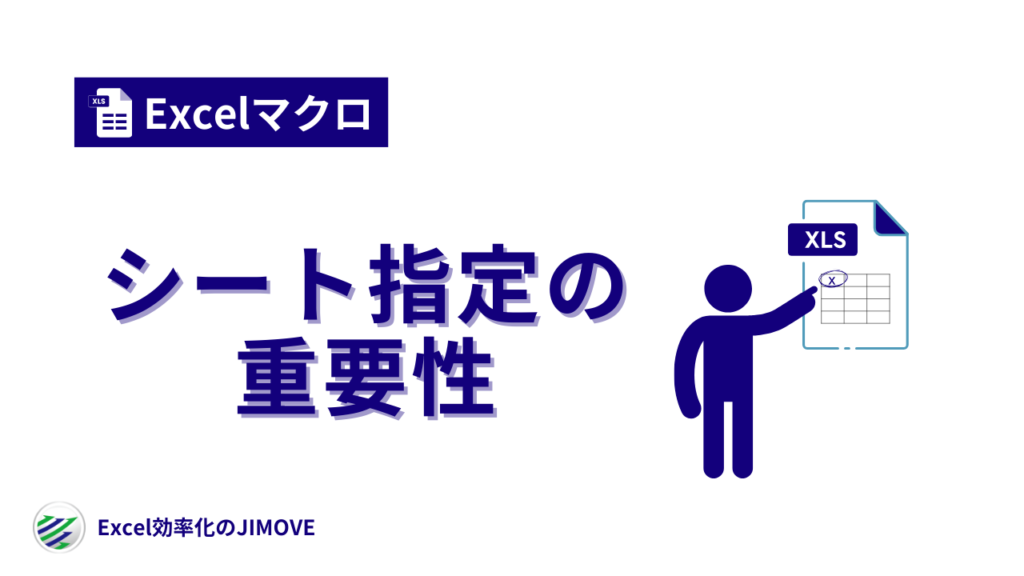 シートを指定する必要性 実務上、VBAでマクロを作るときに、シートの指定をせずに作成することが多くあります。 たとえば、次のようなコードです。 とてもシンプルで簡単なコードで、A1セルに「売上」と入力するだけの処理です。